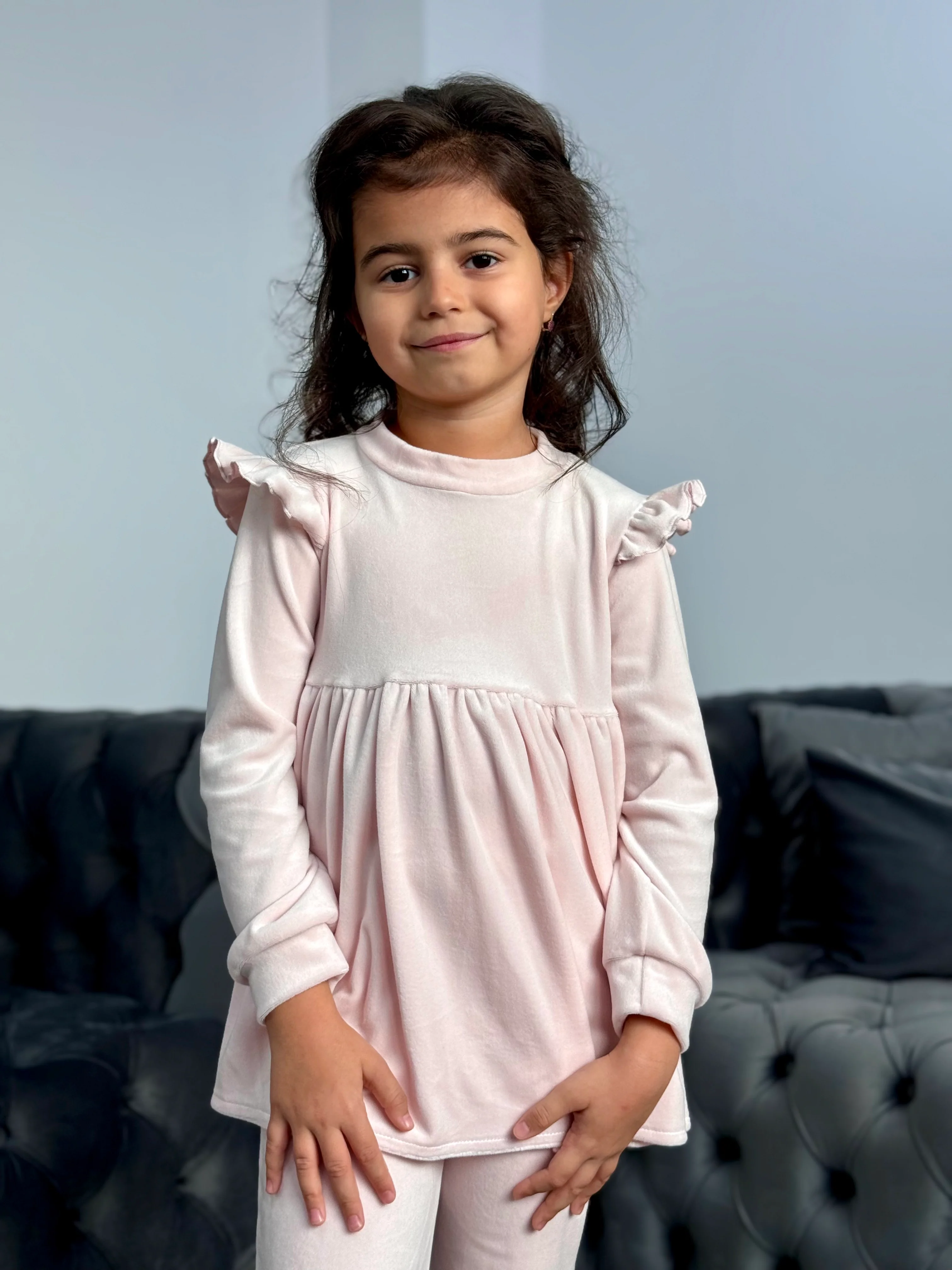 Acest costum pentru fetite este realizat din catifea moale si placuta la atingere, ofera libertate de miscare, ideal pentru sezonul rece. Design modern, potrivit pentru purtarea de zi cu zi si nu numai.